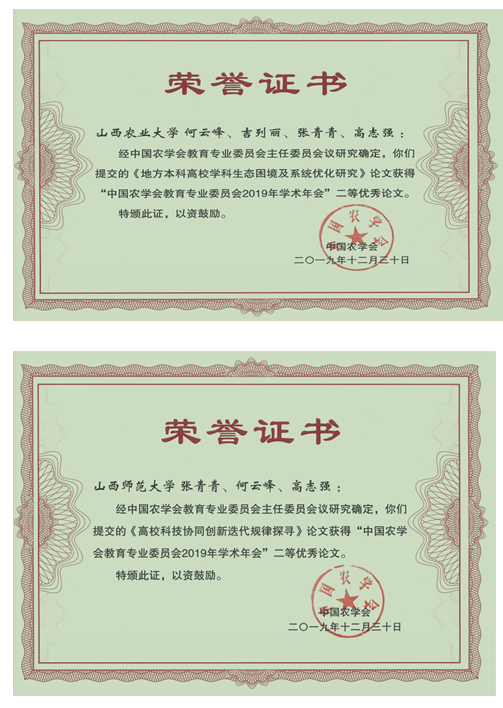 中国农学会农业教育专业委员优秀论文奖